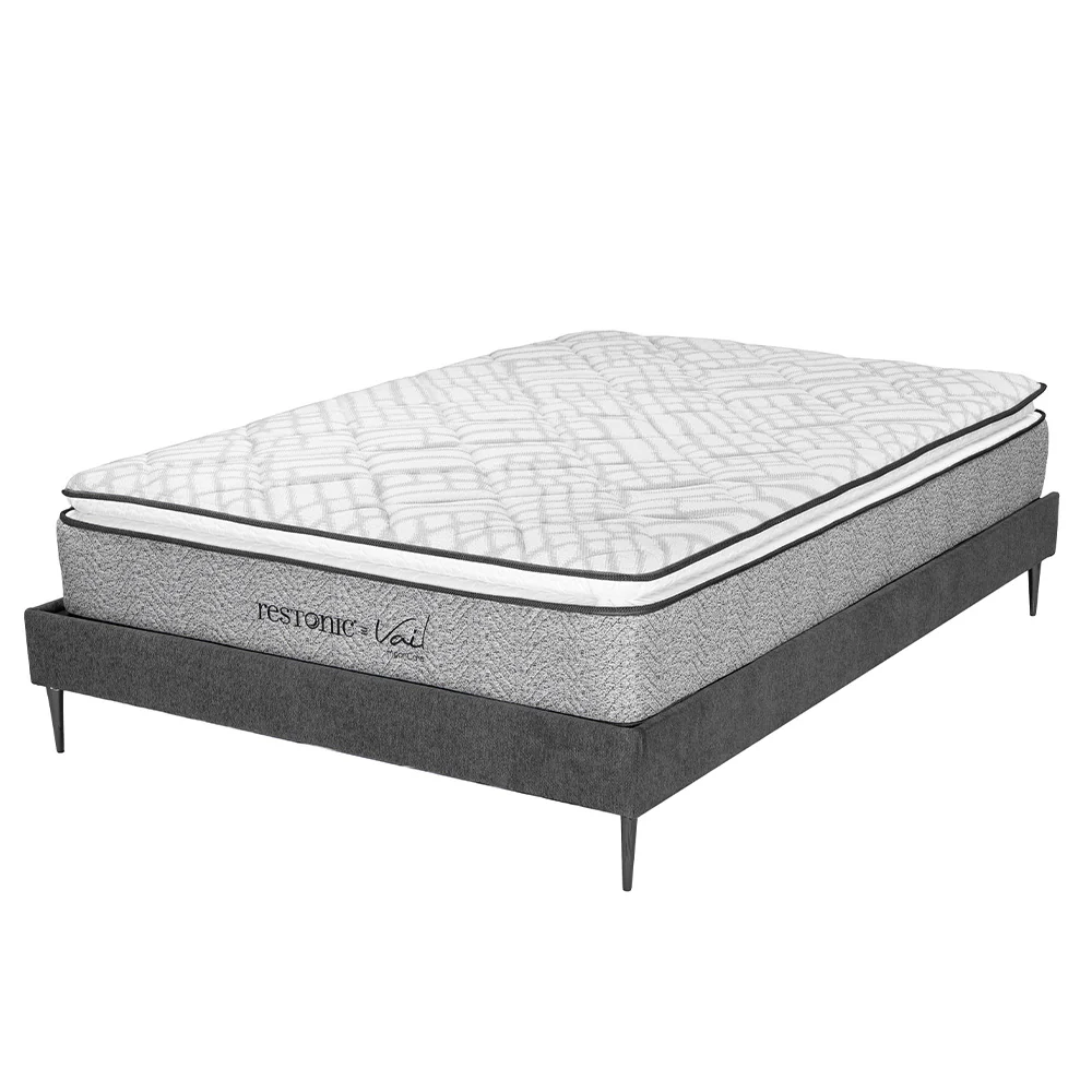 - Colchón Restonic Vail con unidad de resortes continuo. Colchoneta Europillow de 6 cm que brinda mayor soporte al colchón y a tu cuerpo. Cajón tela Jaquard, tapa de tela tejido plano. Nivel de confort Semi-firme.