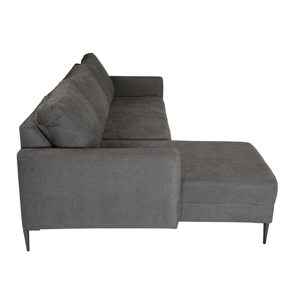 - Diseño contemporáneo que fusiona la elegancia del color negro con la modernidad de las patas largas metálicas y la frescura de cojines en un vibrante tono gris.